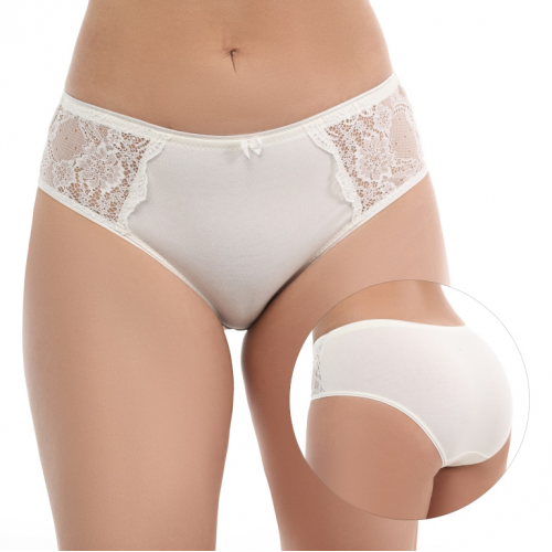 Трусы слипы из хлопкового полотна с завышенной линией талии. Вставки из кружева в тон.