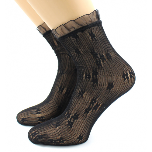 Носки женские Тюль, цветочный узор, рюша на резинке