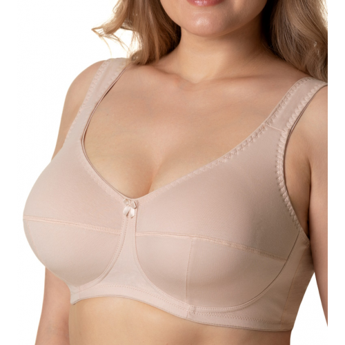 Бюстгальтер без каркасов с мягкой чашкой.Чашки Т-образного членения высоко приподымают грудь и создают округлую наполненную форму.Усиленная бретель снимает нагрузку с плечевого пояса.Широкий стан плотно облегает тело и обеспечивает стабильную комфортную посадку бюстгальтера на фигуре.