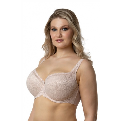 Бюстгальтер на каркасах с дублированной чашкой.Чашки овальной формы с диагональным членением создают округлую наполненную форму. Кружевная верхней детали чашки шире дублированного основания, что в сочетании с широкой кружевной отделкой бретели позволяет сгладить линию перехода от верха чашки к открытому участку груди и с делать бюстгальтер более незаметным под облегающей одеждой.Широкий стан с боковыми упругими пластинами плотно облегает тело и обеспечивает стабильную комфортную посадку бюстгальтера на фигуре.