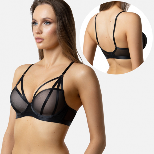 Бюстгальтер на каркасах с формованной чашкой с эффектом Push-Up. Благодаря особенностям внутренней поверхности комфортная формованная чашка эффектно приподымает грудь и смещает с боков к центру, визуально увеличивая её объём на 1,5 размера. Придаёт груди идеальную округлую форму и формирует пикантную ложбинку. Сложная система бретелей эффектно украшает бюстгальтер и создаёт дополнительную поддержку груди. Каркасы плотно прилегают к телу без излишнего давления и раздражения. Стан с боковыми упругими пластинами плотно облегает тело обеспечивая стабильную комфортную посадку.