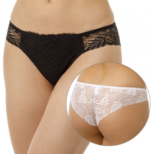 Трусы-бразилианы из эластичного кружева - Передняя деталь на хлопковой подкладке - Открытая модель
