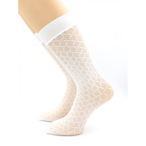 Гольфы женские р.36-40 "Hobby Line" Белые капроновые, рисунок "Ромбы"