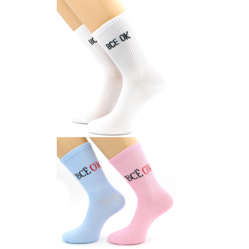Хлопковые женские носки с широкой комфортной резинкой. Надпись "Все ок"