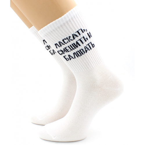 Хлопковые женские носки с широкой комфортной резинкой. Надпись "Ласкать,смешить и баловать"