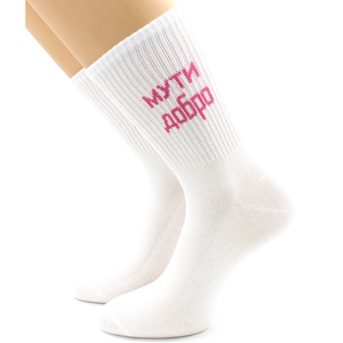 Хлопковые женские носки с широкой комфортной резинкой. Надпись "Мути добро"