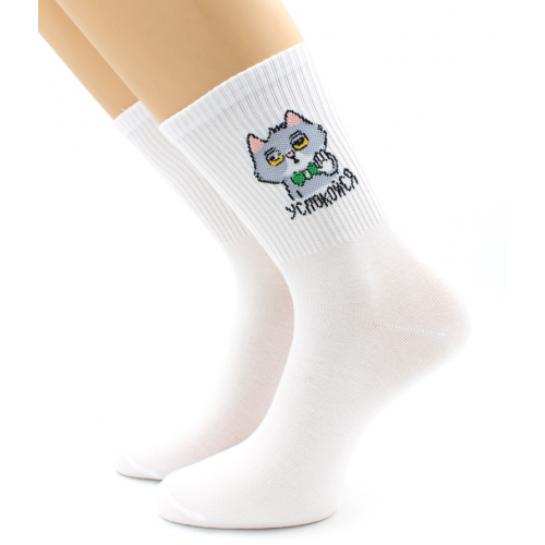 Хлопковые носки унисекс с широкой комфортной резинкой. Надпись "Успокойся"