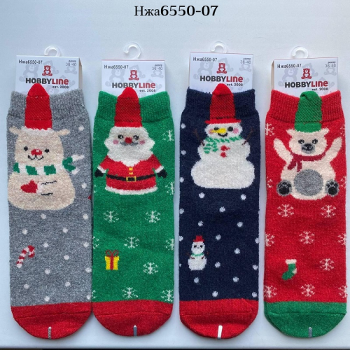 Носки женские ангора, рисунок "Новогодняя 3Д шапочка"
