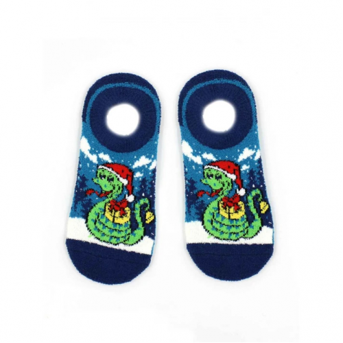Носки женские укороченные, махра-пенка, новогодний рисунок "Змейка с подарком"