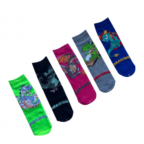 Хлопковые женские носки с широкой комфортной резинкой. С новогодним рисунком "Дракон мультяшный"