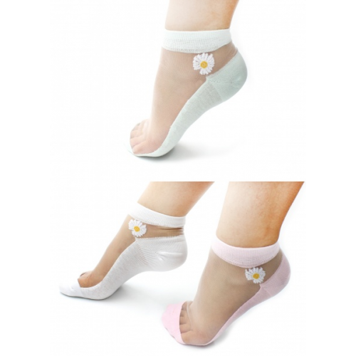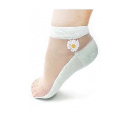 Носки женские укороченные, рисунок сбоку "Ромашка"