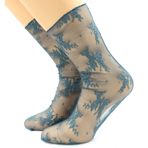 Носки женскиеТюль, однотонные, гипюровые, цветочный узор