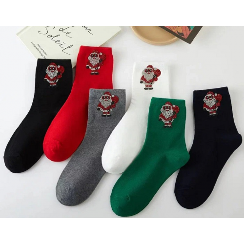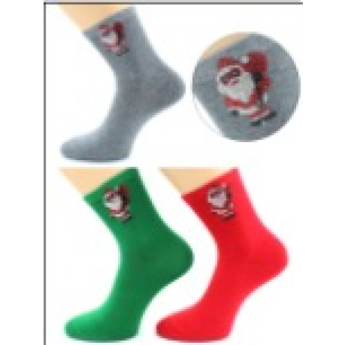 Носки женские ВИП новогодние, стразы"Дед Мороз". Состав : 75% хлопок, 23% полиамид, 2% эластан