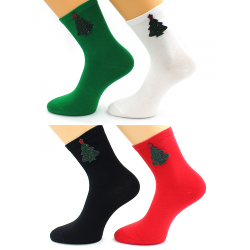Носки женские ВИП новогодние, стразы "Елочка". Состав : 75% хлопок, 23% полиамид, 2% эластан